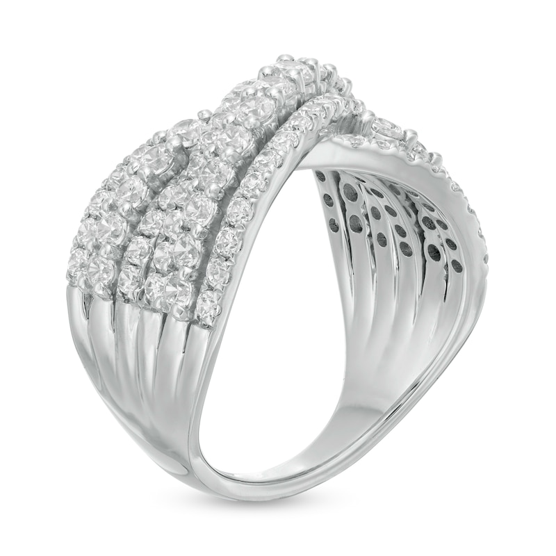 Luxe and lovely, this lab-created diamond triple-row crossover ring is an outstanding look you’ll love to wear day or night.