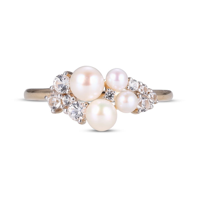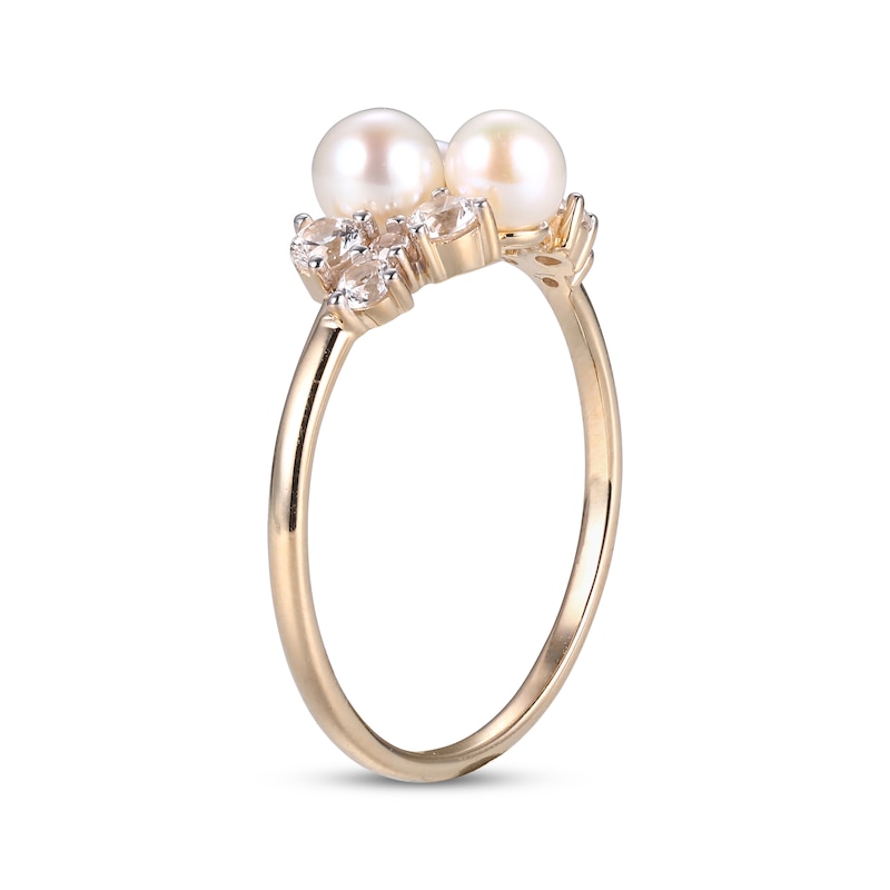 • Cultured Pearl & White Lab-Created Sapphire Fashion Ring 10K Yellow Gold