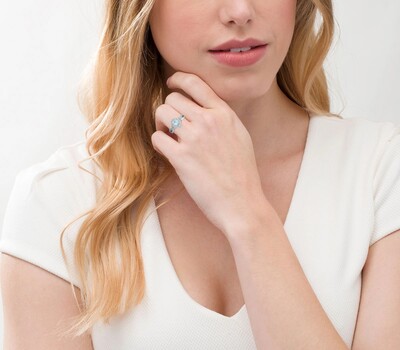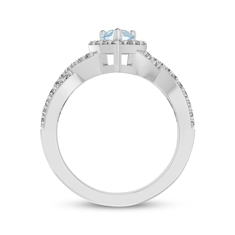 Pear-Shaped Aquamarine & White Lab-Created Sapphire Ring Sterling Silver