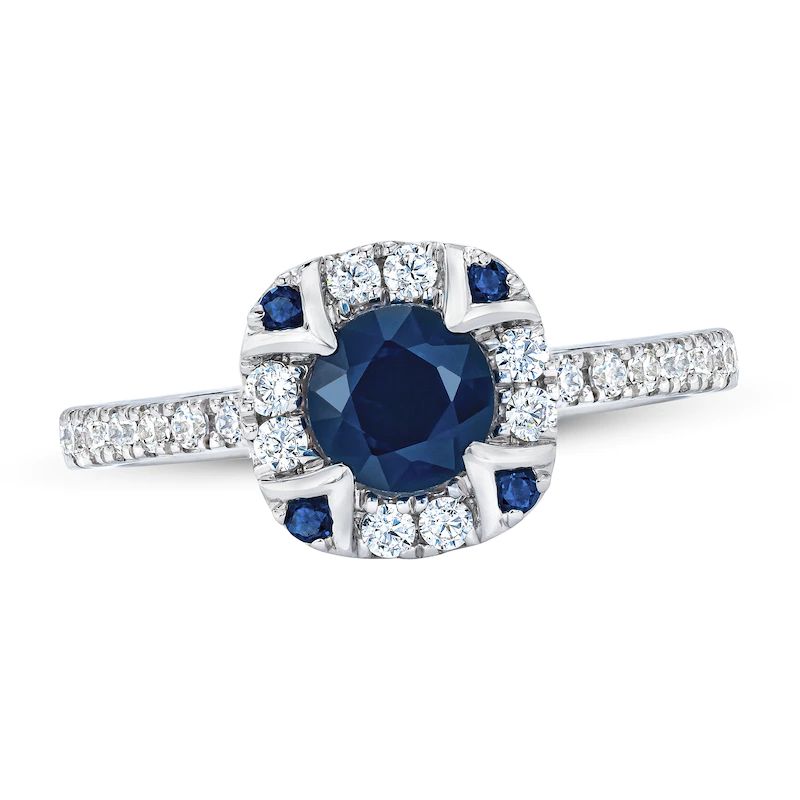 Diamond/Sapphire Engagement Ring 1 cttw Princess/Round 14K Gold