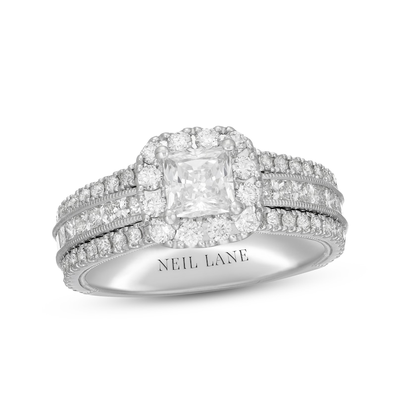 Neil Lane Diamond Engagement Ring 2-1/8 ct tw Princess & Round-cut 14K White Gold