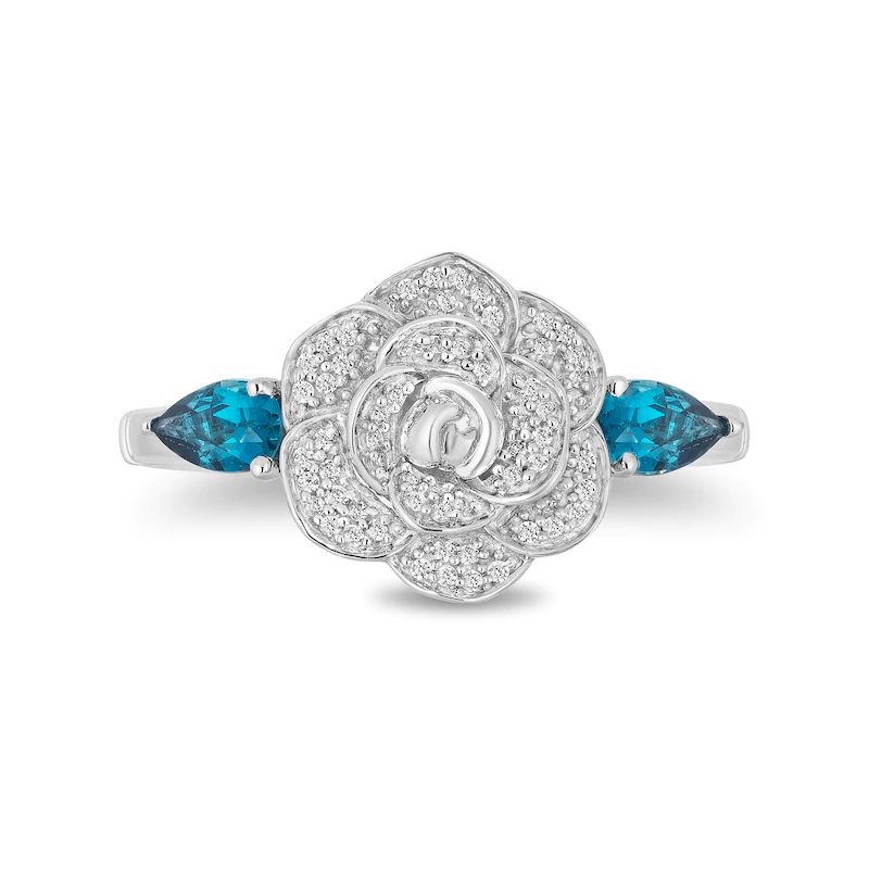 Bursting with beauty from the Enchanted Disney Fine Jewellery Collection inspired by Cinderella, this gemstone and diamond flower ring displays wonder and elegance. Created in sterling silver, this style dazzles with a diamond-adorned bloom sparkling between 5.0 x 3.0mm pear-shaped London blue topaz. Crown insets lower on the shank denote a princess-worthy design. Captivating with 0.085 ct. t.w. of diamonds and a bright polished shine, this choice is a splendid addition to her jewellery box. To honour the 70th anniversary of Disney’s animated Cinderella movie, a Certificate of Authenticity accompanies this collector’s edition piece. ?Disney