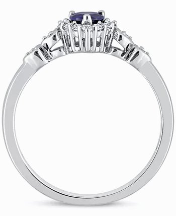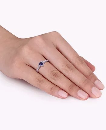 • Lab-Created Blue Sapphire (1/4 ct. t.w.), Lab-Created White Sapphire (1/8 ct. t.w.), & Diamond Accent Heart Ring in Sterling Silver