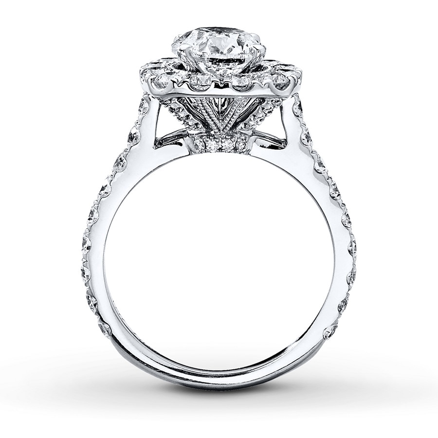 From the Neil Lane Bridal? collection, this thrilling engagement ring is complete with an awe-inspiring 1 1/2 carat round diamond framed in additional round diamonds. The band of the engagement ring is adorned in even more round diamonds for a captivating overall design. Crafted of 14K white gold, the engagement ring has a total diamond weight of 2 3/4 carats.