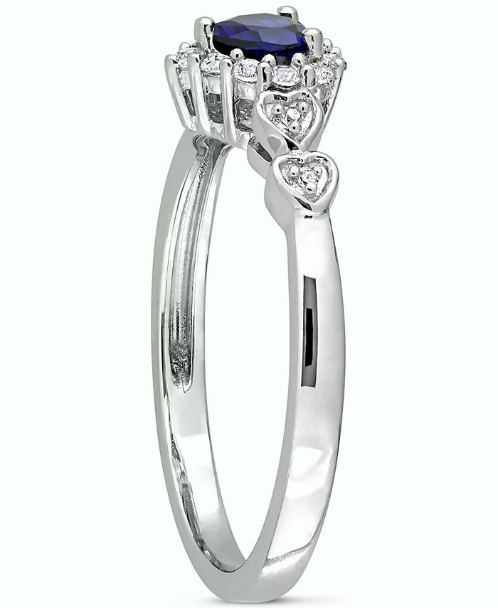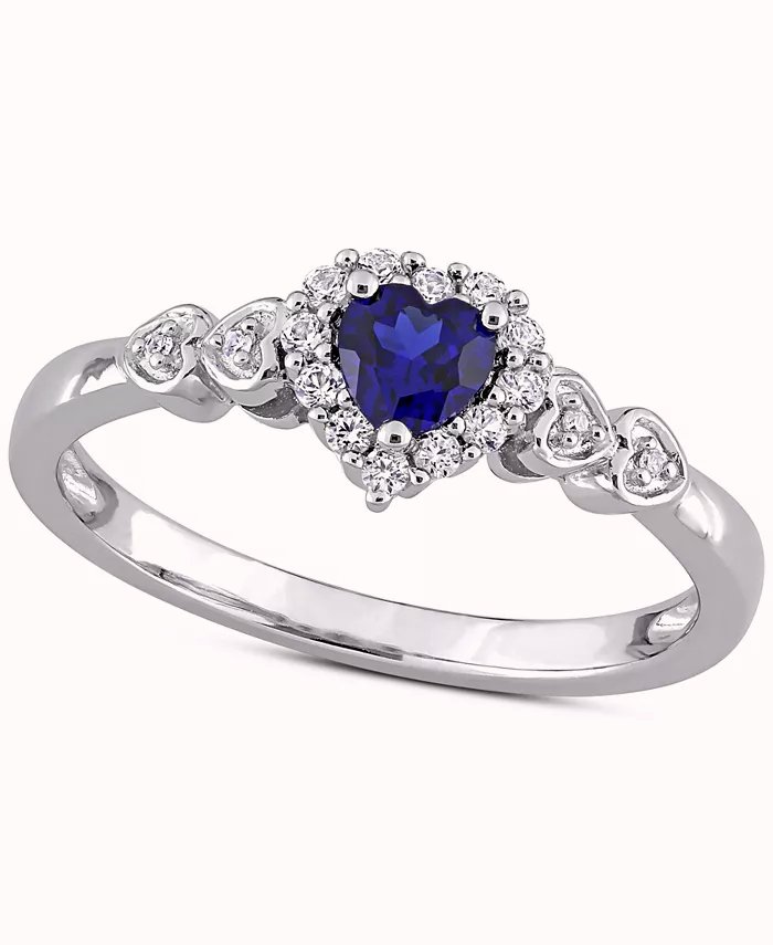 Lab-Created Blue Sapphire (1/4 ct. t.w.), Lab-Created White Sapphire (1/8 ct. t.w.), & Diamond Accent Heart Ring in Sterling Silver