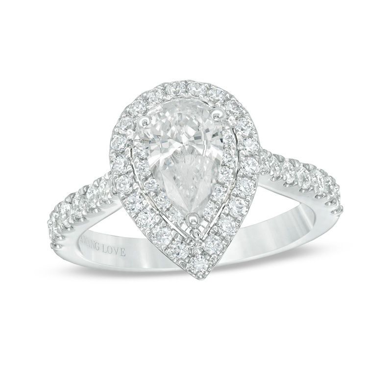 Vera Wang Love Collection 1-3/4 CT. T.W. Certified Pear-Shaped Diamond Frame Engagement Ring in 14K White Gold (I/SI2)
