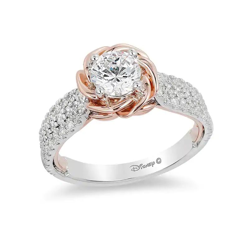 Enchanted Disney Belle 1-1/4 CT. T.W. Diamond Rose Frame Engagement Ring in 14K Two-Tone Gold
