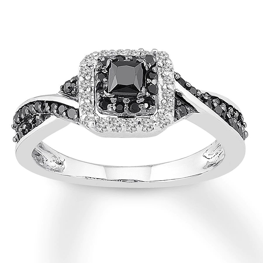 Black Diamond Ring 3/8 ct tw Princess/Round Sterling Silver