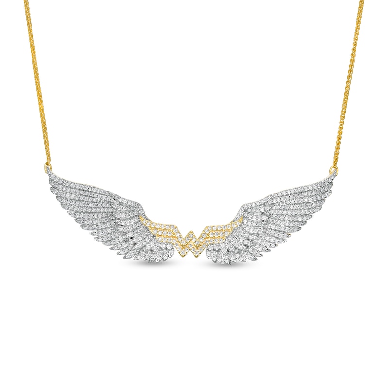 Soar to new heights in style with this show-stopping diamond wing necklace from the Wonder Woman Collection. Crafted in warm 10K gold, this dazzling design features layered feathers decked with shimmering diamonds. At the center, the "WW" logo sparkles with diamond-studded detail. Spectacular with 2 cts. t.w. of diamonds and a brilliant buffed luster, this 2.9-inch look suspends centered along a 15.1-inch wheat chain that secures with a lobster claw clasp. The Wonder Woman Collection of fine jewelry at Zales is inspired by one of the most beloved and iconic DC Super Heroes of all time. Embodying strength and grace, Wonder Woman is a modern-day warrior. This exclusive fine jewelry collection inspires you to wear your strength, confidence and power.