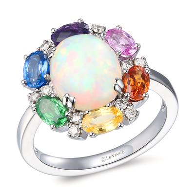 Le Vian Ring featuring 1 7/8 cts. Neopolitan Opal , 1/3 cts. Blueberry Sapphire , 1/3 cts. Spessartite, 1/4 cts. Bubble Gum Pink Sapphire , 1/4 cts. Yellow Sapphire, 1/5 cts. Dark Amethyst, 1/6 cts. Forest Green Tsavorite , 1/6 cts. Nude Diamonds s