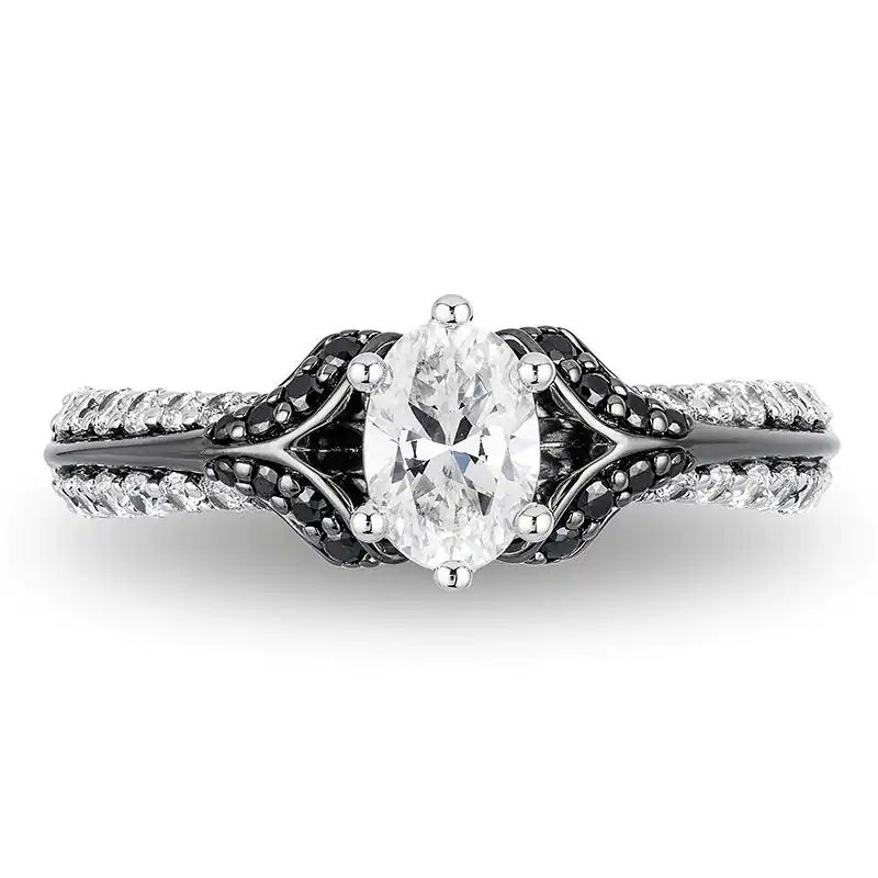 Enchanted Disney Villains Evil Queen 1 CT. T.W. Oval Diamond Engagement Ring in 14K White Gold with Black Rhodium