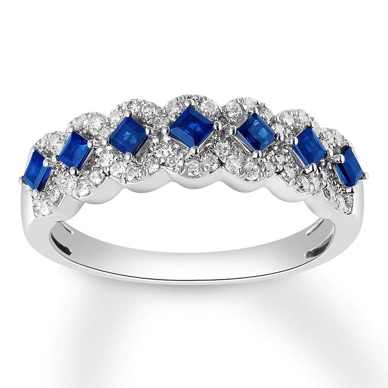 Sapphire Anniversary Band 1/4 ct tw Diamonds 10K White Gold