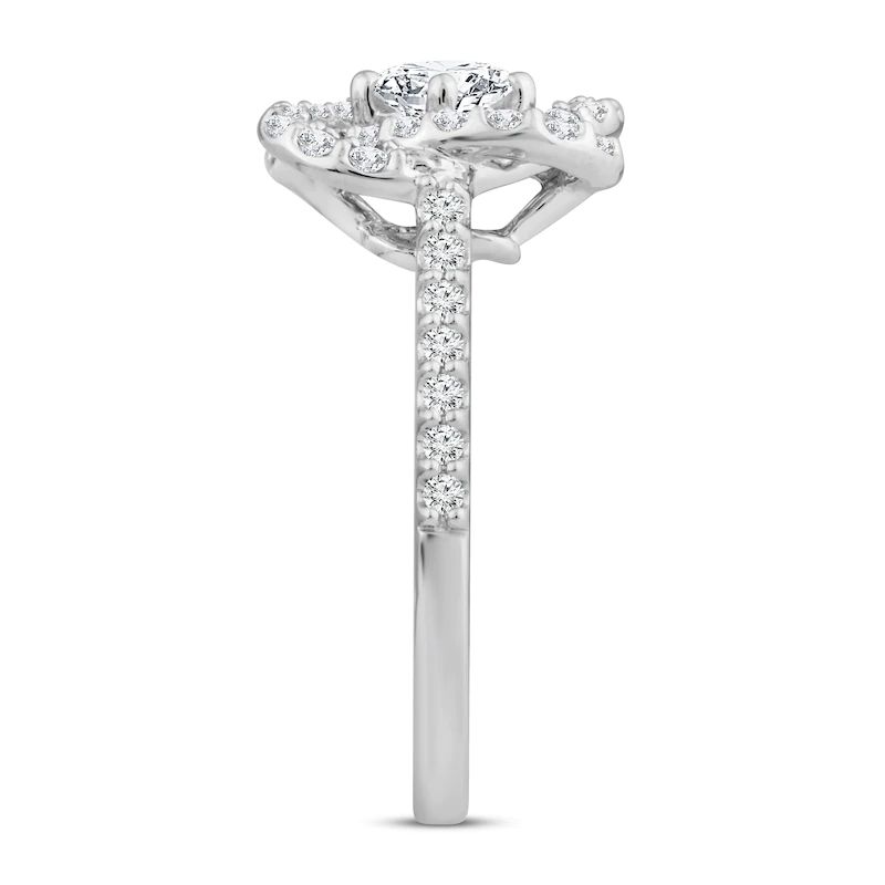 This eye-catching diamond ring features a unique interwoven design to symbolize the strength of love and keeping you centered. Crafted of 14K white gold, the ring features a beautiful round center diamond and dazzles with round diamonds throughout, bringing its total diamond weight to 1 carat. From the Center of Me? collection.