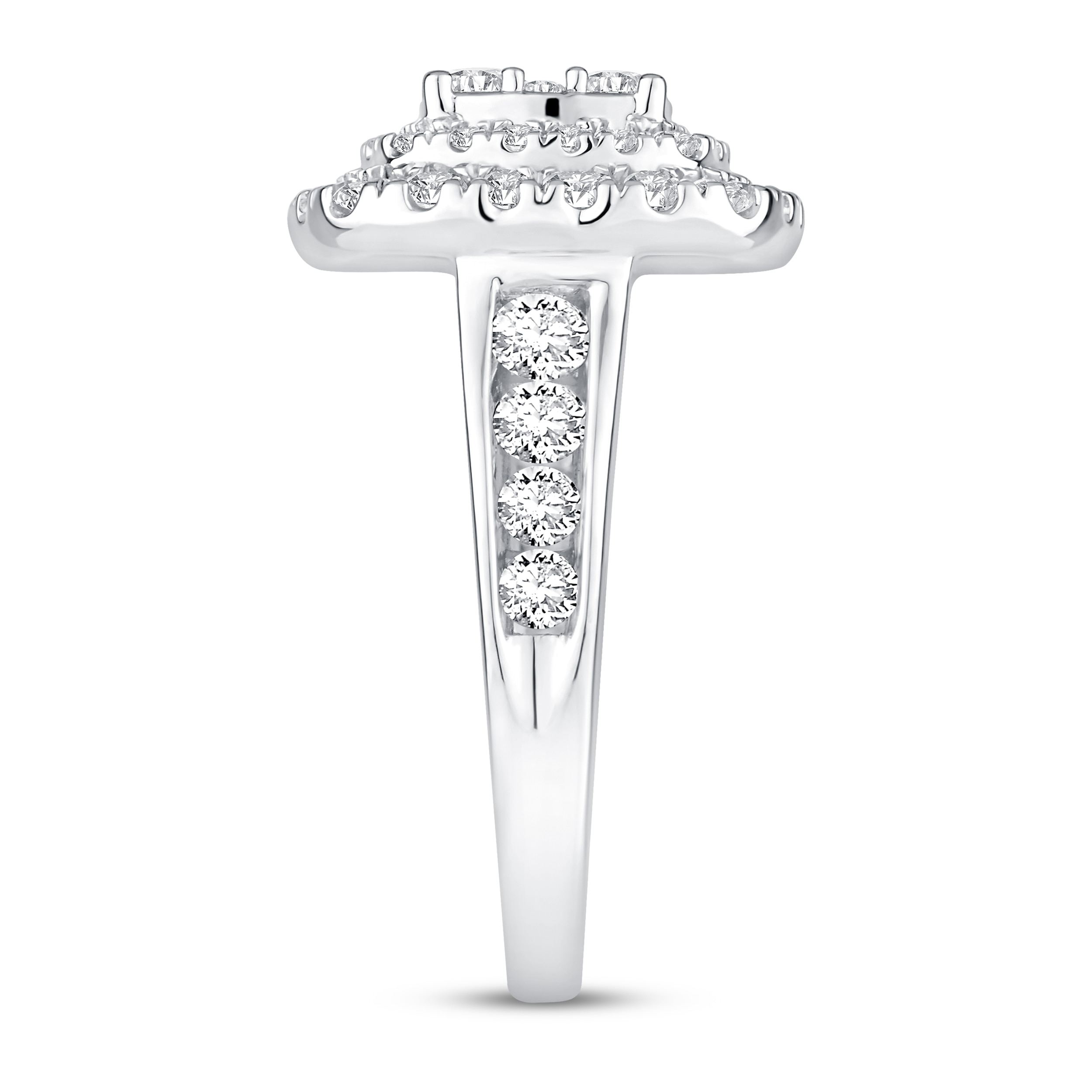 This breathtaking women鈥檚 engagement ring features a myriad of brilliant round diamonds stacking atop a 14K white gold band. Sparkling diamonds line halfway down each side of the band to bring the total diamond weight to an impressive 2 carats. From the Now & Forever? bridal collection.
