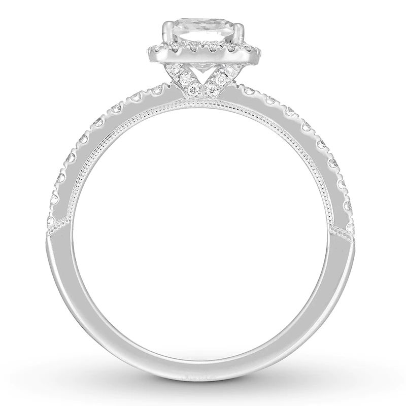 Boasting an impressive 2 carats in total diamond weight, this eye-catching diamond engagement ring is fahsioned in 10K white gold and features stunning round diamonds forming its pear-shaped center. Additional round diamonds halo the center and beam down the band with baguette diamonds in between. From the Now & Forever? bridal collection.