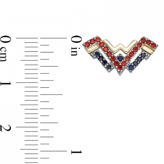 With stunning color, these distinctive gemstone stud earrings from the Wonder Woman? Collection deliver valiant design. Fashioned in sterling silver and warm 10K gold, each dynamic earring showcases the "WW" logo in eye-catching silver rows of regal red garnets and bright blue sapphires. A sculpted ribbon in polished yellow gold completes this classic symbol. Buffed to a brilliant luster, these post earrings secure comfortably with friction backs. The Wonder Woman? Collection of fine jewelry at Zales is inspired by one of the most beloved and iconic DC? Super Heroes of all time. Embodying strength and grace, Wonder Woman? is a modern-day warrior. This exclusive fine jewelry collection inspires you to wear your strength, confidence and power.