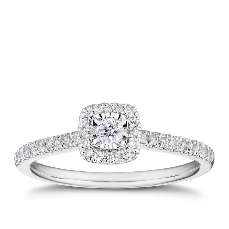 9ct White Gold 0.25ct Diamond Illusion Set Cushion Shaped Halo Ring