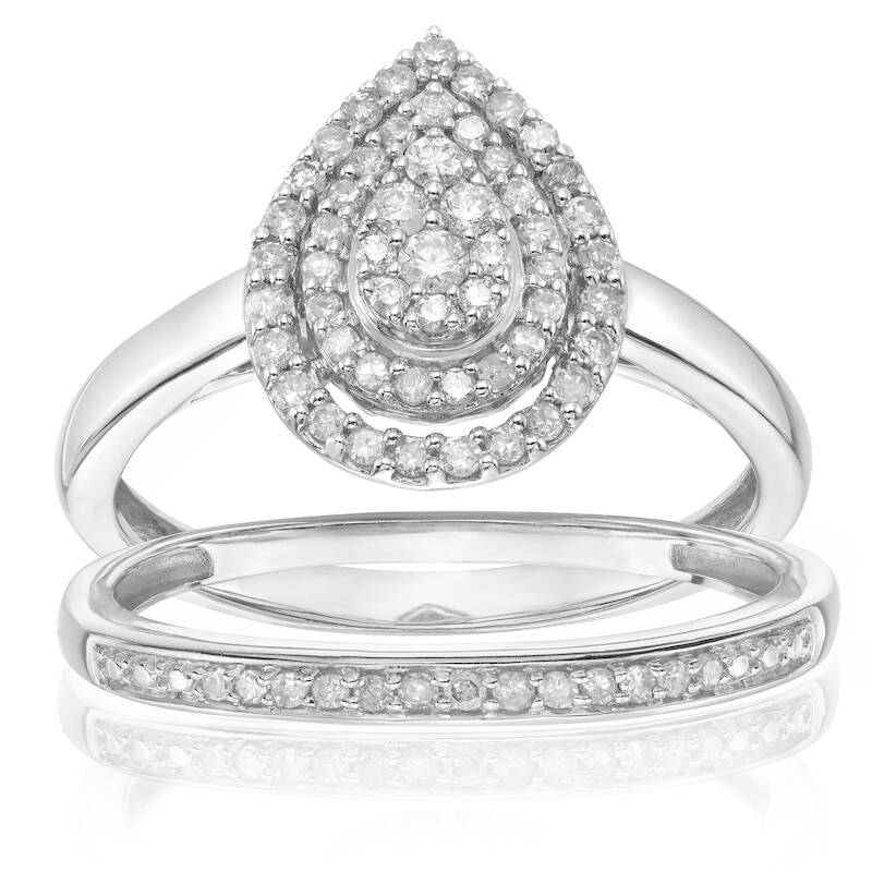 Perfect Fit 9ct White Gold 0.33ct Diamond Pear Bridal Set