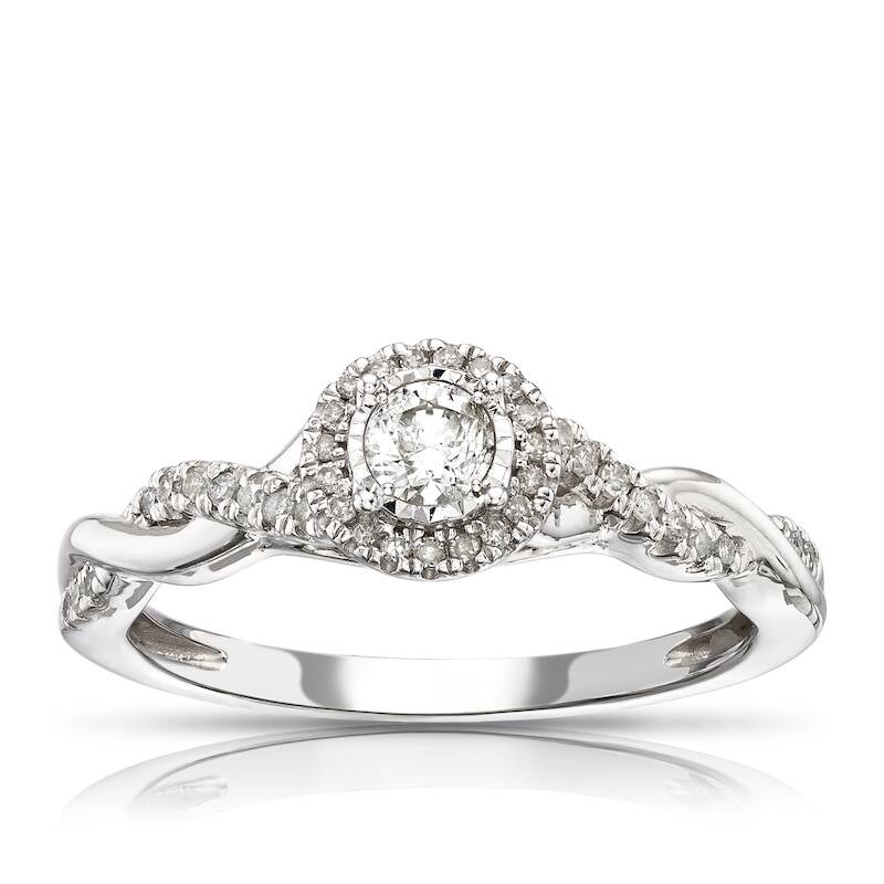 9ct White Gold 0.25ct Diamond Twisted Shoulders Solitaire Ring