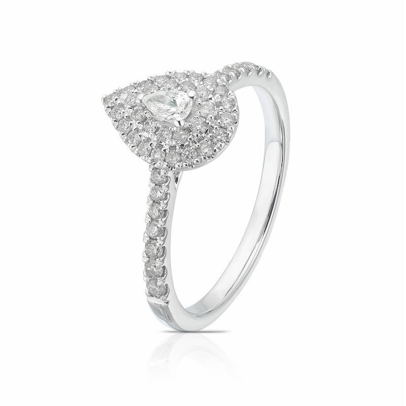• 14ct White Gold 0.40ct Diamond Pear Double Halo Ring